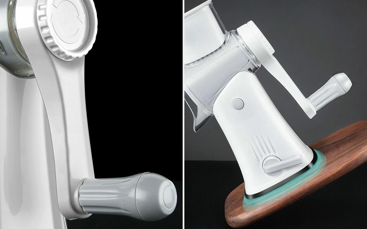 Nygex greater turns cheese, carrots, cucumbers and chocolate into magic. One sturdy base replaces crowded drawers of dull, unsafe tools. Hand crank design keeps fingers protected while meals become faster, fresher, and easier.