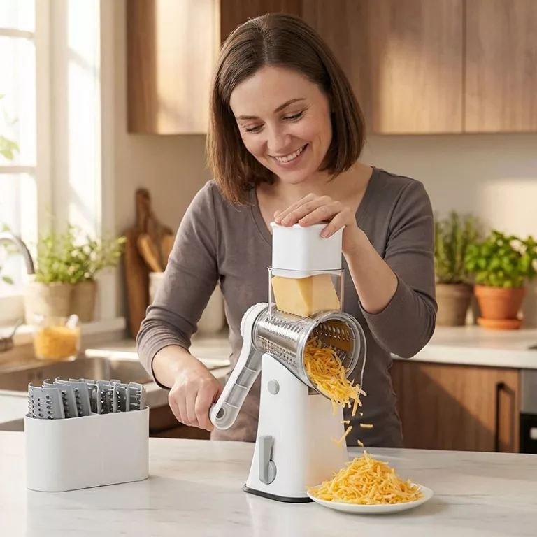 Bought this slicer for my tiny kitchen, and it replaced three old gadgets. Grates cheese, cuts potatoes, even chocolate curls for cake, all super fast.