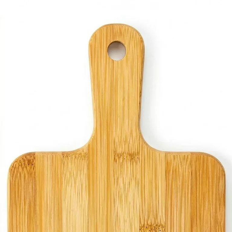 Got this bamboo board for weeknight dinners and it instantly calmed my messy counter. Great size, comfy handle, and it looks cute hanging up.