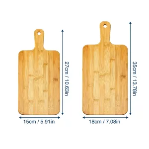 Nygex bamboo board turns busy kitchens into calm spaces quickly. Generous surface handles meats, cheeses, vegetables, fruits and pizza easily. Smooth edges protect fingers while the long handle keeps hands comfortable. Hang it after washing to save cupboard space instantly.
