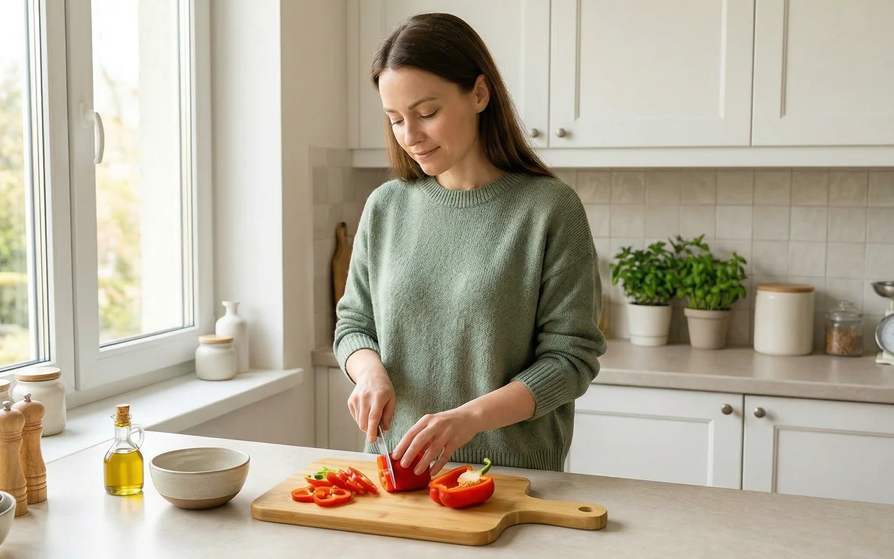 Cooking feels simpler because ingredients stay organised on the Nygex board. The handy handle helps transfer sliced food straight to pans neatly.