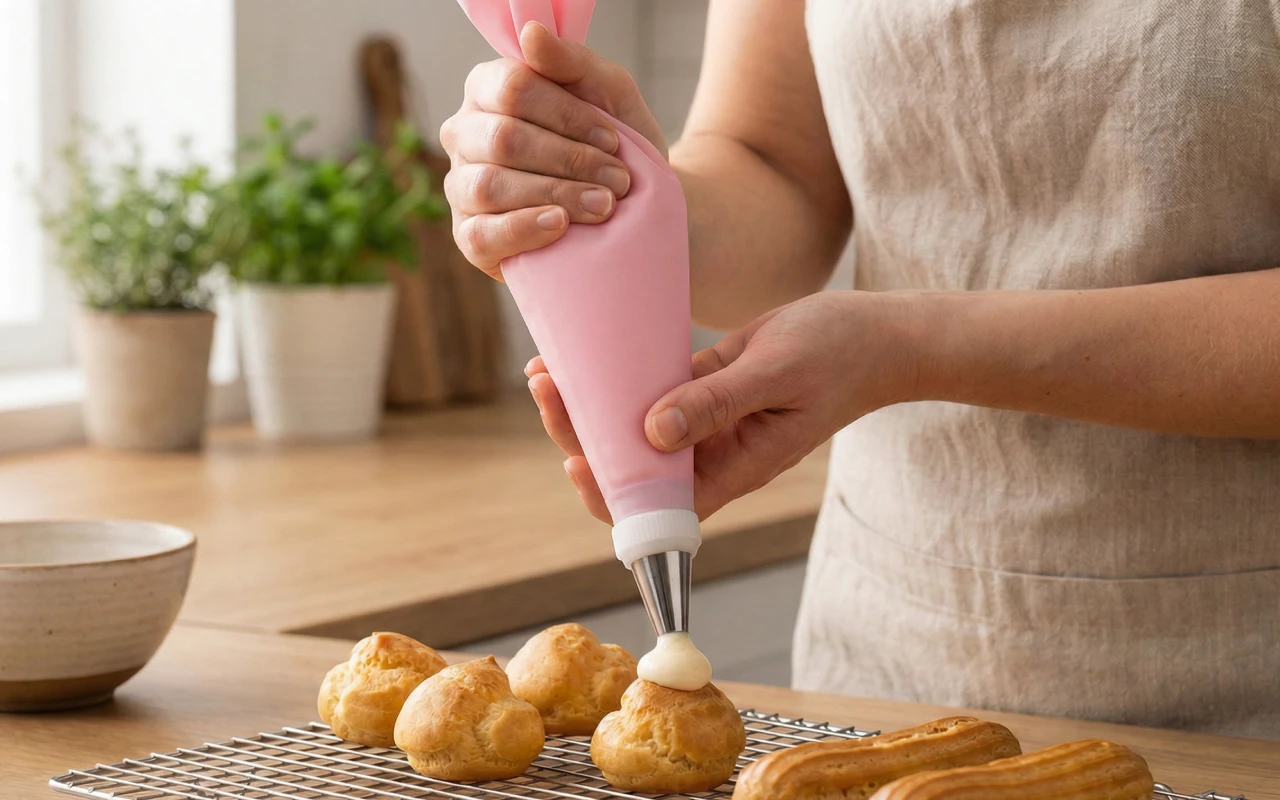 I used the piping bag with chocolate ganache on eclairs and was surprised how smoothly it flowed. Cleaning the silicone afterward was quick, just warm soapy water.