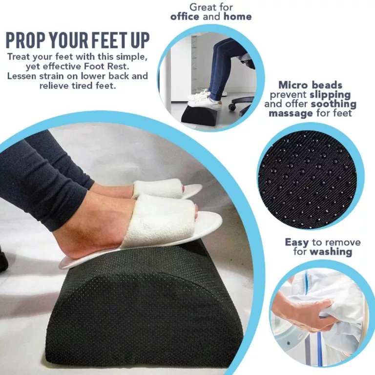 This cushion has improved my comfort at work tremendously. My back no longer hurts, and my feet feel well-supported. Couldn’t be happier with this footrest!