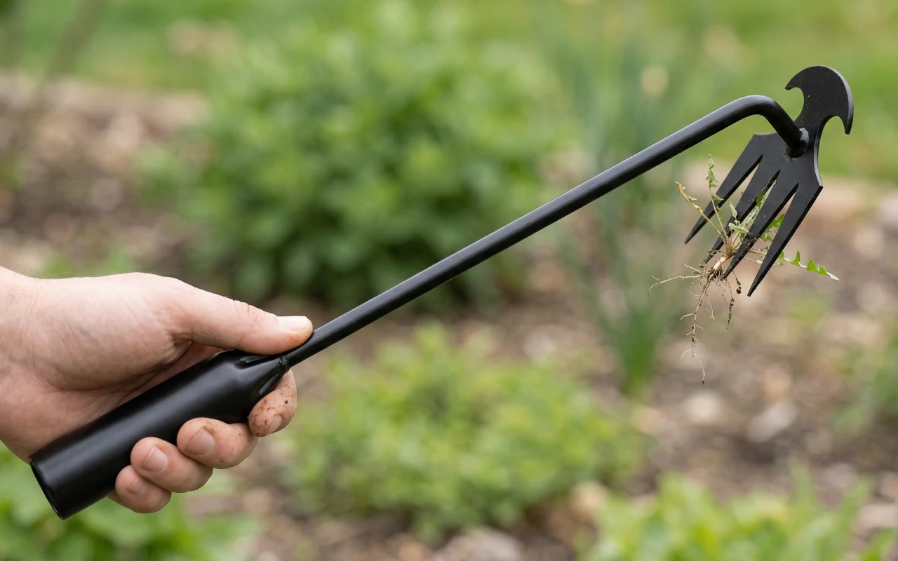 We have tight corners around raised beds where a hoe won’t fit. This slim weeder slides in easily and pulls out tough growth without me kneeling.