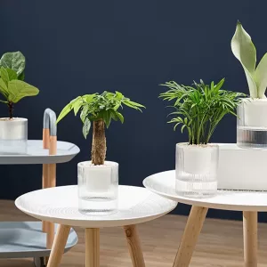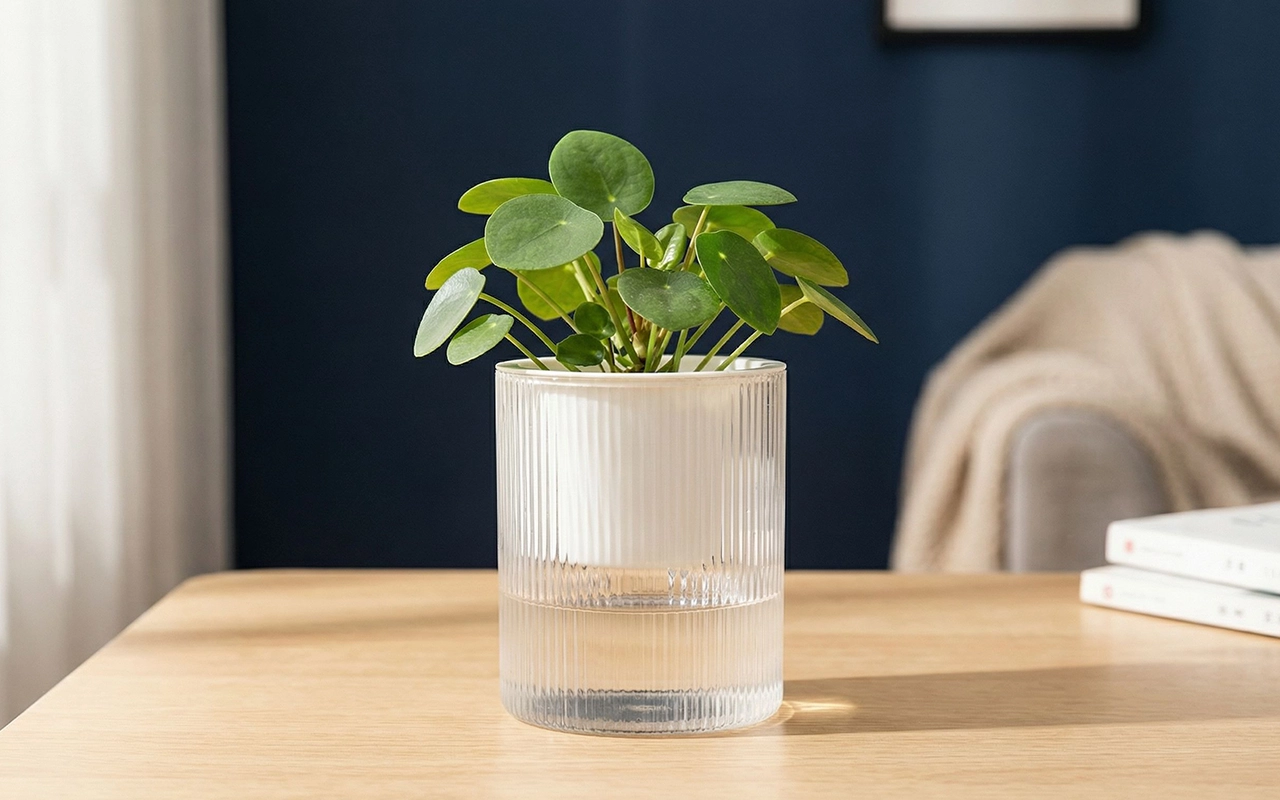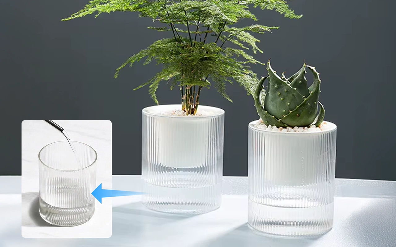 A clear base stores moisture, keeping roots evenly fed. Visible fill marks guide top-ups, preventing guesswork.