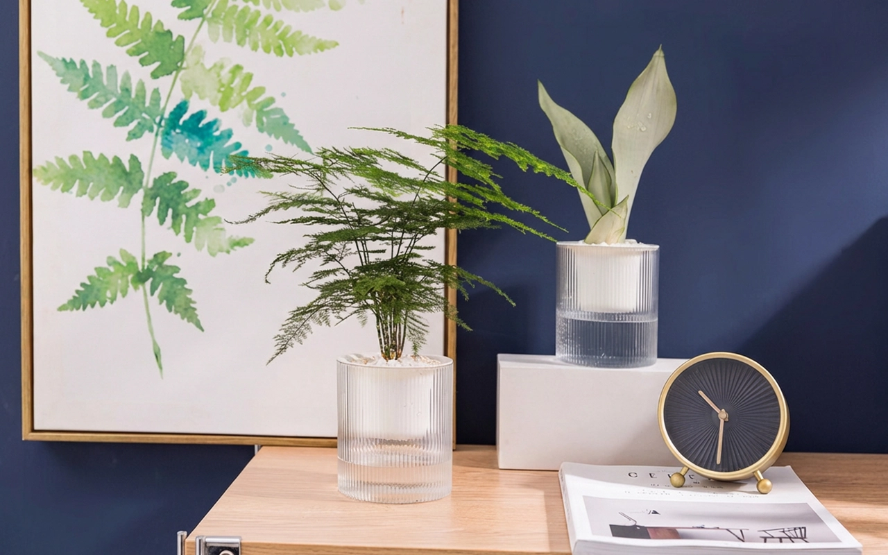 Small size suits desks, windowsills, and bedside tables. Ribbed walls catch light, adding modern décor appeal.