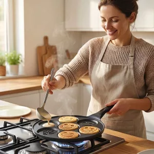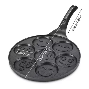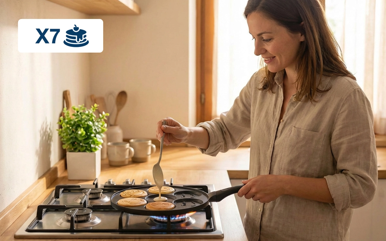 We do Sunday brunch with this pan every week. Seven little pancakes mean nobody waits long, and the cheerful shapes make our table feel fun.