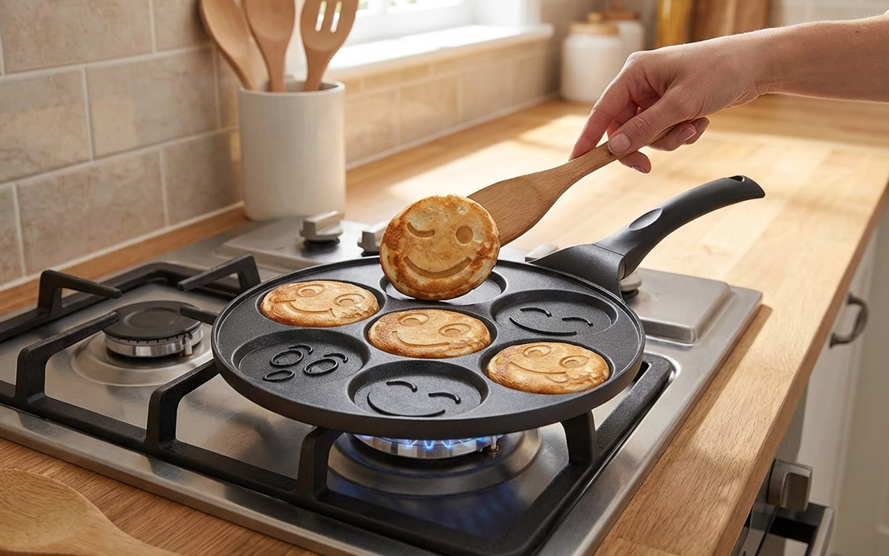 This pan turned our rushed school mornings into a quick game. Kids guess which face they’ll get, eat fast, and I’m not stuck scrubbing afterward.