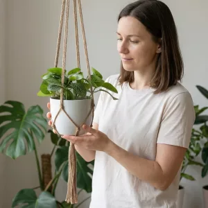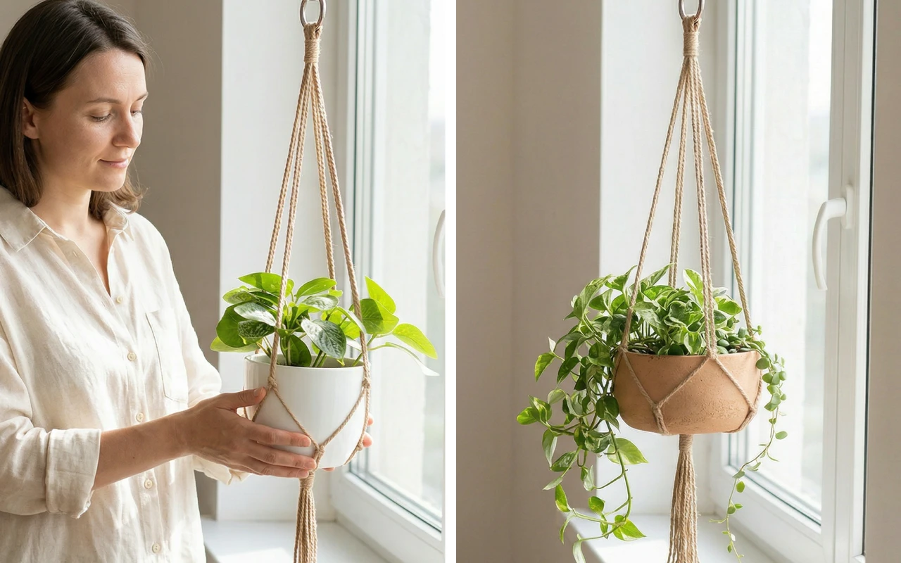 We have a toddler who grabs everything, so hanging the fern higher was important. This macrame holds it steady above little hands, and I don’t worry anymore.