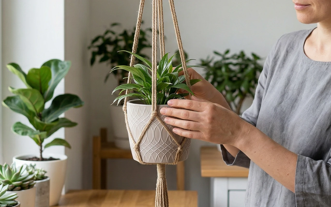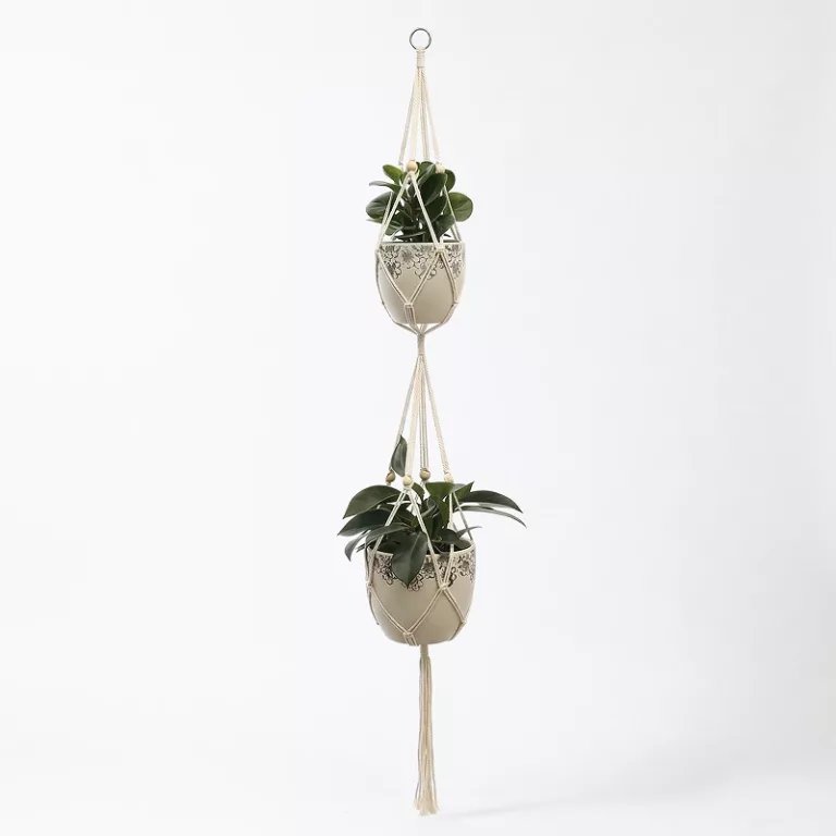 Nygex macrame turns dull rooms into calm natural retreats. Handmade knots cradle favourite pots securely above curious little hands. Hanging displays free precious surfaces, helping small homes feel spacious. Soft cotton cords suit bedrooms, balconies, kitchens, hallways, anywhere.