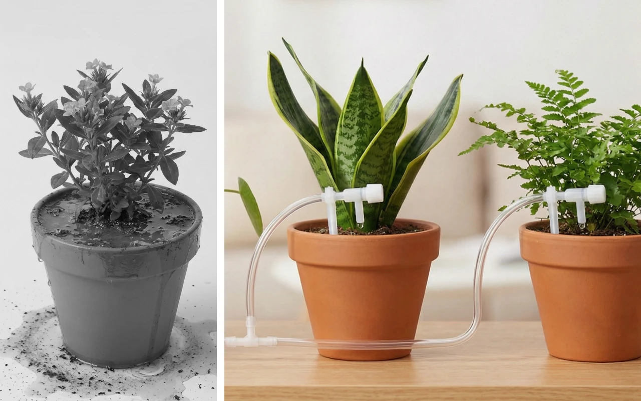 Living in a small apartment, I hated messy watering. This little setup sends water straight into the compost, keeps shelves dry, and my basil finally stopped wilting.