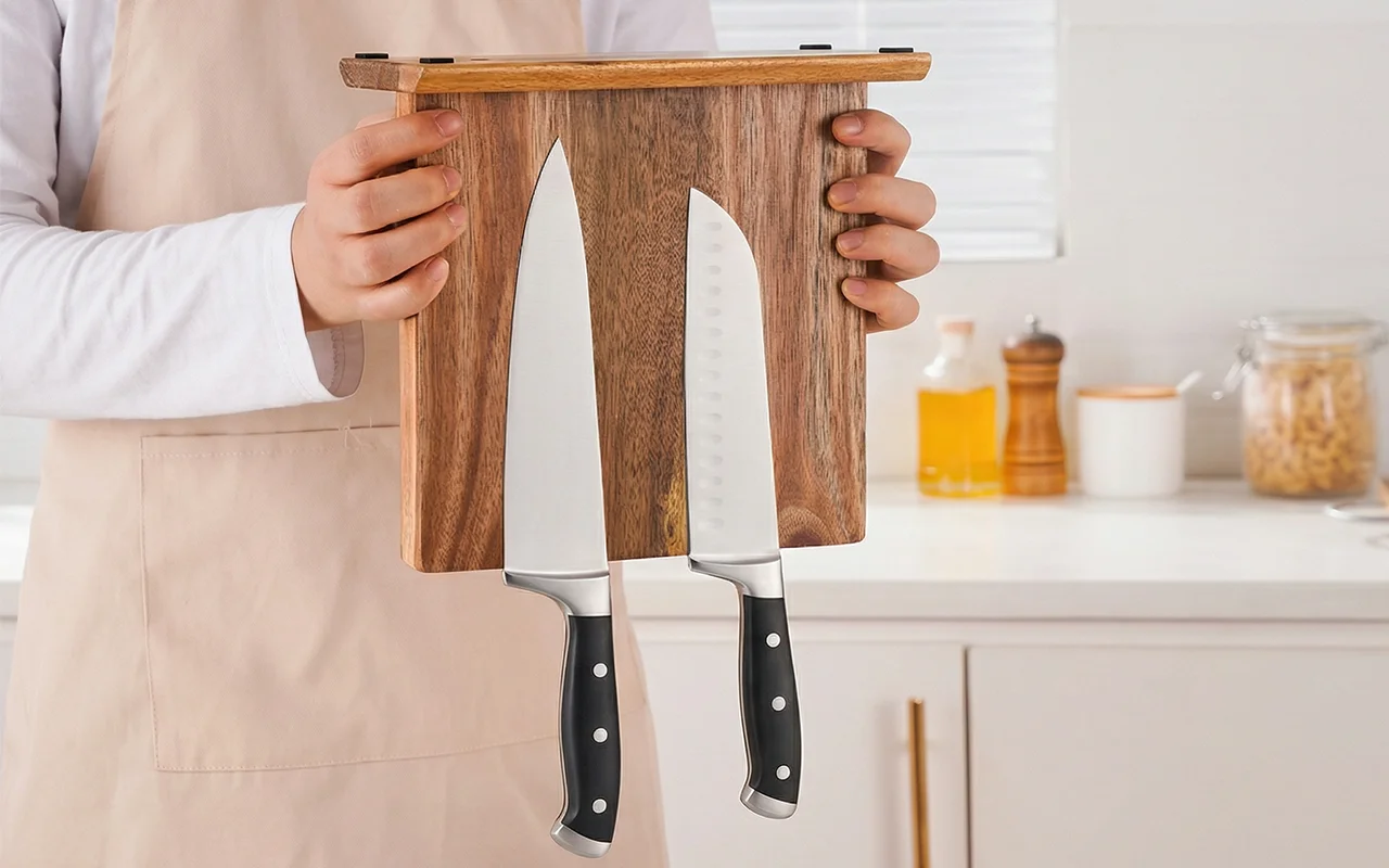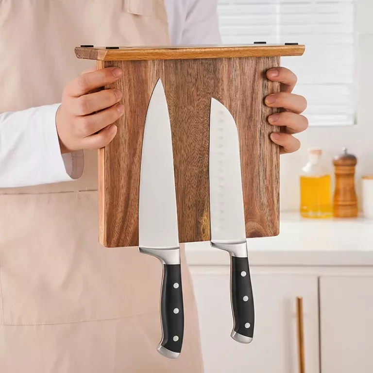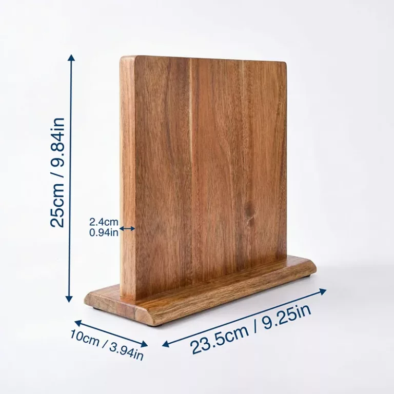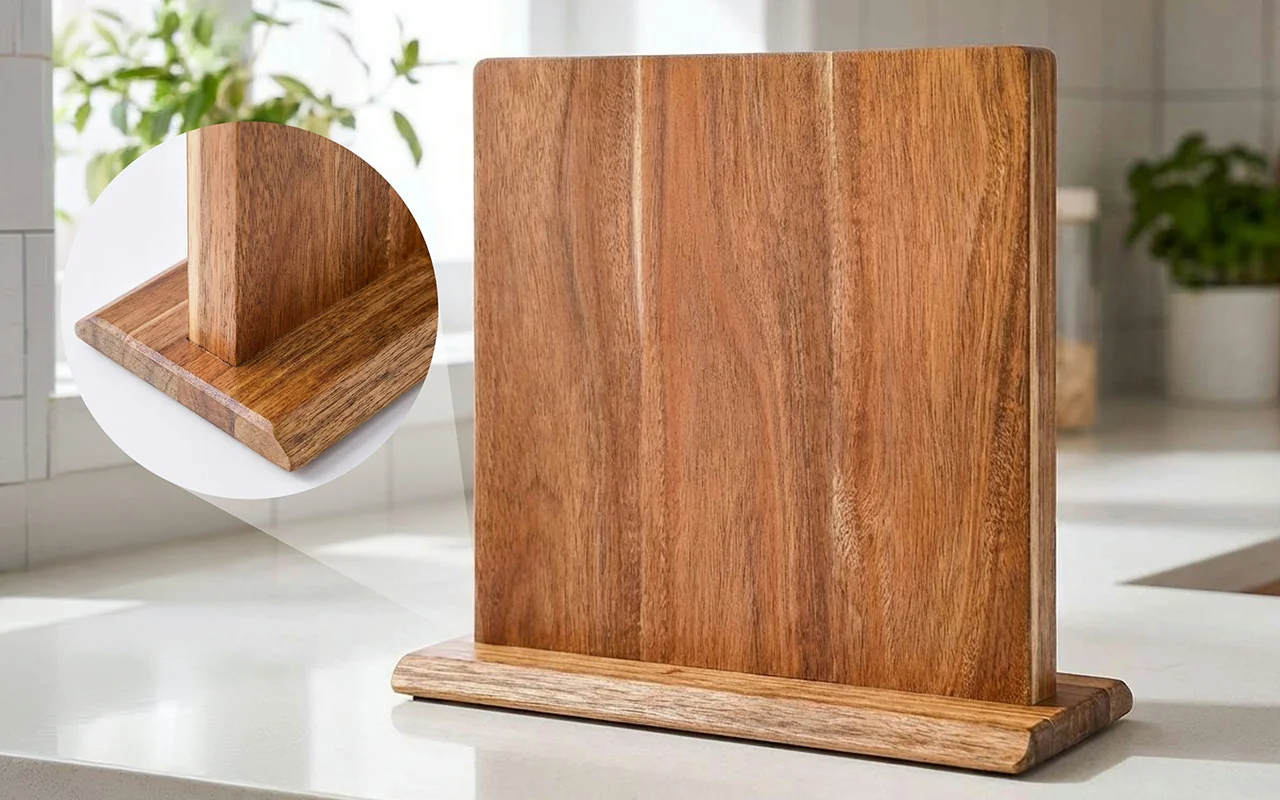 I love how solid this stand feels. The hidden magnets hold my heavy chef’s knife easily, and the rounded corners are safe around kids.