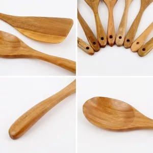 I like that the bamboo and teak feel natural in my kitchen. I’ve noticed my pans stay smooth, and I feel better using these instead of more plastic.